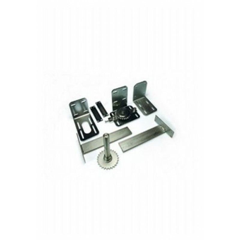 Передающая система для откатных промышленных ворот. Система ручного открывания/закрывания откатных ворот с валом и зубчатым колесом Z = 26 для полого вала привода, натяжки цепи, анкерными болтами для крепления двигателя и кронштейнами для крепления створки.