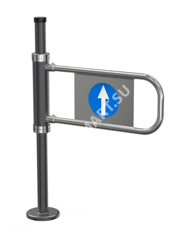 Калитка является двухсторонней: дуга поворачивается на 90° в обе стороны, что позволяет использовать ее как на вход, так и на выход без необходимости выбора направления. После прохода дуга автоматически возвращается в исходное положение под действием возвратной пружины и гидравлического доводчика, надежно перекрывая проход. Это идеальное решение для организации двунаправленного движения в узких проходах.