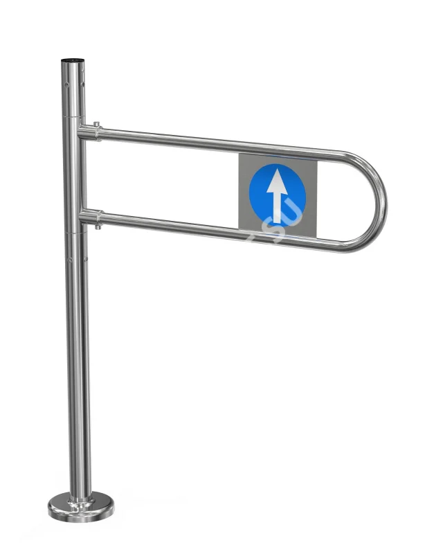 Калитка является односторонней (левой): дуга проворачивается только в одну сторону — на 90° против часовой стрелки. После прохода дуга автоматически возвращается в исходное положение под действием возвратной пружины, надежно перекрывая проход. Это идеальное решение для организации направленного движения в местах с ограниченным пространством и высокими требованиями к эстетике.