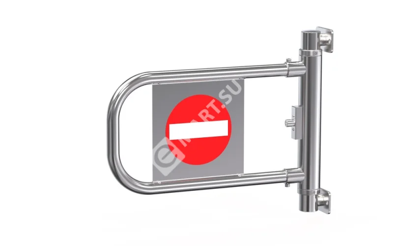 Калитка не имеет механизма автоматического возврата дуги. Дуга фиксируется замком в двух положениях: «открыто» или «закрыто». При необходимости изменения направления вращения дуги достаточно перевернуть калитку, поменяв местами верхний и нижний крепежные фланцы. Это идеальное решение для организации временного или постоянного перекрытия прохода в местах с интенсивным движением.