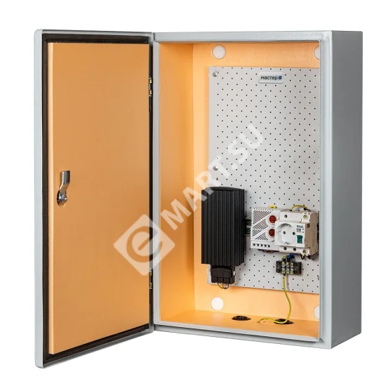 Климатический навесной шкаф МАСТЕР-3УТ-Л IP 66 с электронным гигростатом служащим для защиты оборудования в условиях повышенной влажности (осадки, пар или близость к любым водоемам) Предназначен для использования в любых климатических условиях на улице ( -55°С +50°С)