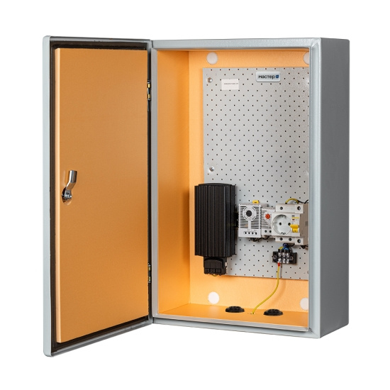 Климатический навесной шкаф МАСТЕР-3УТ-Г IP 66 (Ver. 2.0) с механическим гигростатом служащим для защиты оборудования в условиях повышенной влажности (осадки, пар или близость к любым водоемам) Предназначен для использования в любых климатических условиях на улице (-55°С +50°С)