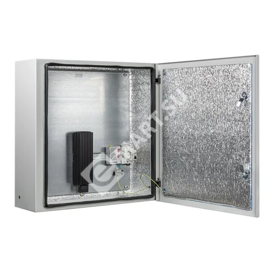 утеплитель из порилекса НПЭ толщиной 10 мм, замок 2 шт, ключ 1 шт, монтажная плата 1шт,люк под геромовводы 1 шт, гермовводы 2шт, розетка 1 шт, автоматический выключатель 1шт, гигростат NT 78-M (электронный) 1шт,нагреватель мощностью в 150 Вт 1шт.