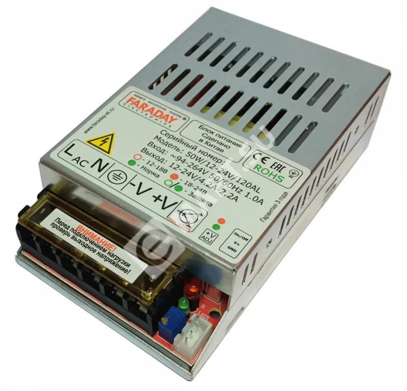 вход 100-240 В, выход 12-24 В, 50 Вт, 4,2 А, автоматическая защита от КЗ и перегрузки