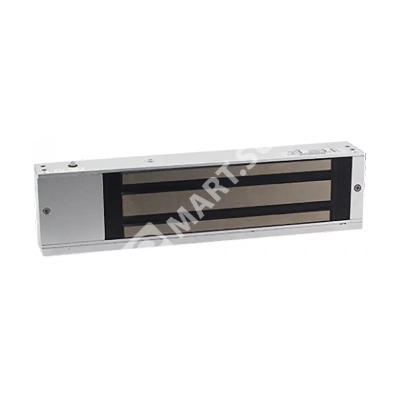 Электромагнитный замок, усилие удержания 500 кг, питание 12V, потребление 0,46А, размеры: 265L*74,7W*39H мм, со световой индикацией, планка в комплекте, подключение: питание (+/-), датчик двери (NO/NC/COM), анидированный алюминий.