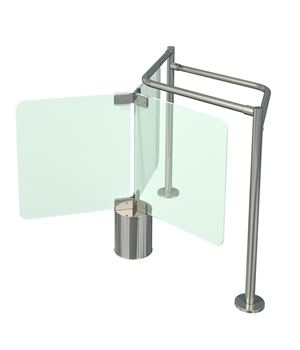 ОМА РОТРИК 16.587 AA - Толстая стойка поясного роторного турникета из нержавеющей стали. Моторный бесконтактный привод. Три створки из закаленного стекла (не установлены, упакованы отдельно). Два выносных индикатора направления прохода. Выносной Блок Управления, кабель мотора, пульт системный и кабель управления в комплекте. Упаковка: один ящик из ДВП (стойка и блок) и три короба из гофрокартона (створки)