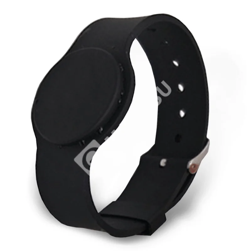 Бесконтактный идентификатор в виде браслета с застёжкой. Рабочая частота 13,56 МГц, совместим со считывателями формата Mifare. Цвет - черный.