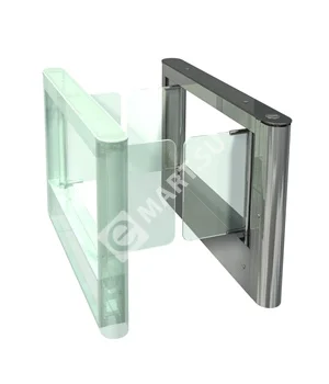 OMA 86.888 AV - Одна тонкая боковая стойка турникета с картоприемником без считывателя для реверсивного турникета мат-ома-ш дуплекс. Самостоятельно не используется. Нужна еще боковая стойка для одноканального турникета и еще центральные стойки для многоканального. Две створки из закаленного стекла установлены на валы турникета. Два моторных привода створок. Блок из 8 фотодатчиков для оптической линий контроля. Встроенные яркие led индикаторы. Пульт системный, кабель управления и кабель связи в комплекте. Ширину прохода канала в пределах 690-812 мм укажите в примечании к заказу. Стойка упакована в ящик из двп, крышка - в гофрокартон