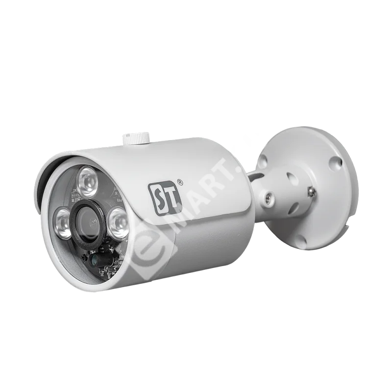 Видеокамера ST-181 M IP HOME POE, БЕЛАЯ, цветная IP,Разрешение:3Mp (2304*1296),уличная,с ИК подсветкой, Цилиндрическая, Фокусное расстояние: 2,8mm (Гор.103° /Верт. 51°/ Диаг. 116°), Сенсор: 1/2,7" Progressive Scan CMOS, Дальность ИК подсветки: до 40 м, Светочувствительность (мин. освещенность): 0,01 Lux (цвет) / 0 Lux (с IR), Кодек сжатия: H.264/ H.265, Кодек сжатия аудио: G.711A/ U, Аудио вход/выход: 1 RCA / -, Напряжение питания: 12В, PoE: *Опция сплиттер в комплекте (802.3af(вариант А/В)) , ИК-фильтр: IR-CUT (механический), Функции улучшения изображения: HLC, BLC, DWDR, AGC, MGC, Defog, 2D и 3D-DNR, AWB, MWB, ONVIF 20.06 (Profile S), Smart IR: есть, UYC, Кол-во кадров в секунду: 3Mp - 25 к/с 2Mp - до 30 к/с, Рабочая температура: -50… +60°С, Степень защищенности/вандалостойкость: IP66, Материал корпуса: МЕТАЛЛ, Габариты видеокамеры,мм (d*l*k): 66,3х80х168,15
