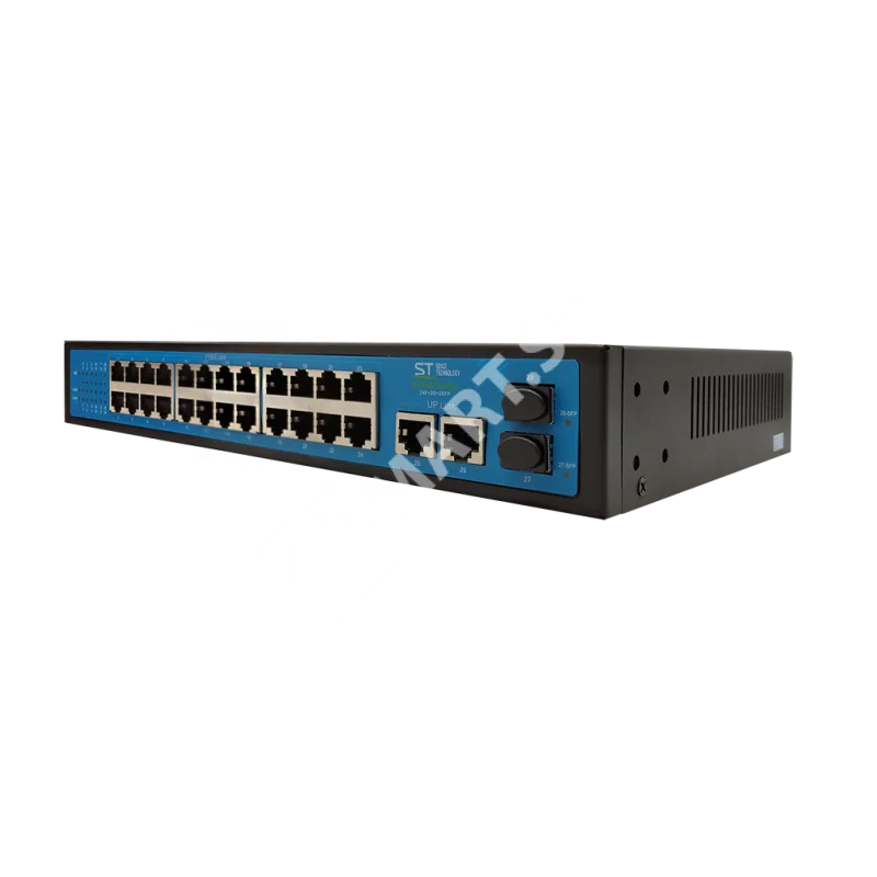 Источник питания ST-S242POE (24G/2G/2S/340W/A)PRO (версия 2), POE вариант A.Switch POE 24-х портовый для обеспечения проводных сетей напряжением 48В , защита от КЗ, AI PoE, Грозозащита, PoE порты: 24 х (10/100/1000 Мбит/с), UpLink порты: 2 х(10/100/1000 Мбит/с), SFP порты: 2 х (10/100/1000 Мбит/с), Max.пропускная сп-ть: 1000Мбит/канал (PoE порты,UpLink порты), Uвых: 48 (±10%), Р(ном) каждый порт (Вт): 14, Р(макс) каждый порт (Вт): 30, Р(сумм) общая (Вт): 340, Тип РоЕ: A, Коммутационная способность (Гбит/с): 56, AI PoE(watchdog), Система охлаждения: пассивная, Металл, Температура эксплуатации: От -45°C до +55°C, Габаритные размеры ИП: 310x182x45 мм