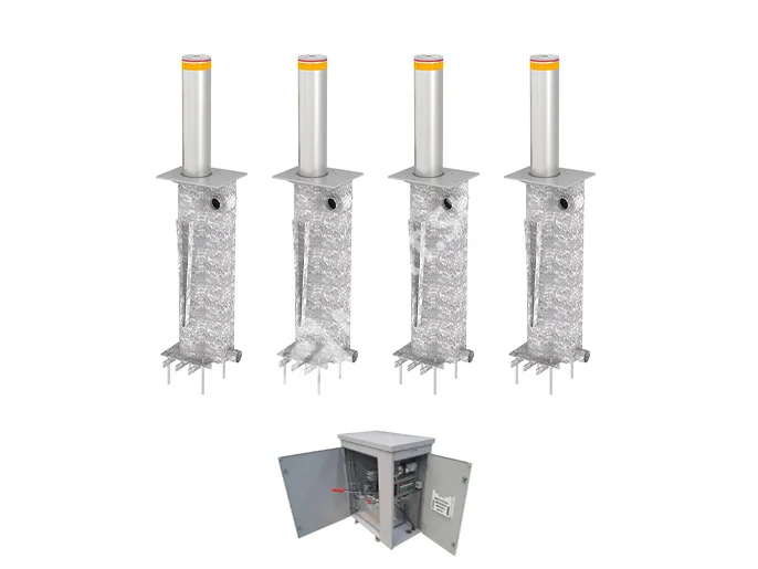 - Комплект из 4 боллардов: Готовое решение для перекрытия проездов средней ширины с единым управлением.
