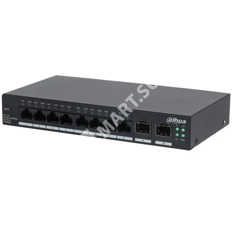 10-портовый коммутатор с функцией облачного управления Порты: 8 RJ45 10/100/1000Мбит/с, 2 SFP 1000Мбит/с (uplink); питание: 12В(DC)