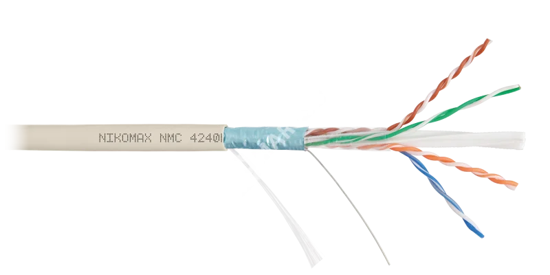 Кабель NIKOMAX F/UTP 4 пары, Кат.6 (Класс E), тест по ISO/IEC, 250МГц, одножильный, BC (чистая медь), 23AWG (0,55мм), полимерный материал нг(А)-LSLTx, внутренний, светло-серый, 305м - гарантия: 5 лет / 15 лет системная