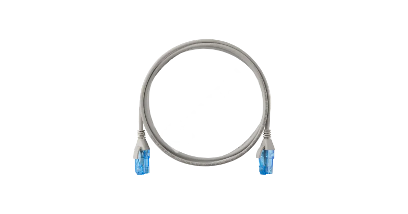 Коммутационный шнур NIKOMAX Slim Line U/UTP 4 пары, Кат.6 (Класс E), 250МГц, 2хRJ45/8P8C, T568B, заливной, с защитой защелки, многожильный, BC (чистая медь), 28AWG (7х0,127мм), LSZH нг(А)-HFLTx, серый, 0,5м