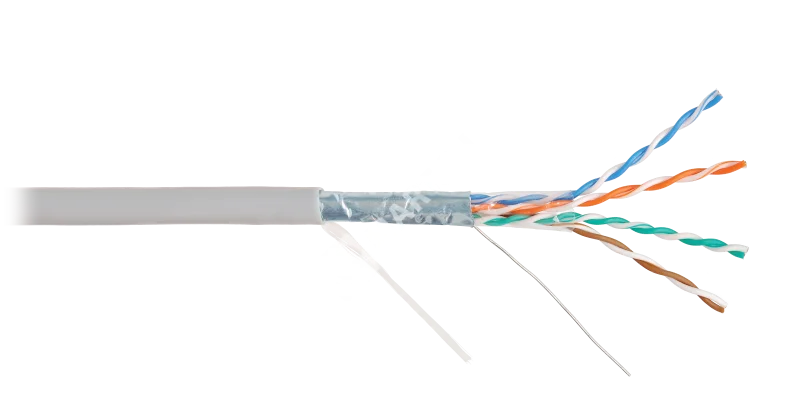 Кабель NIKOLAN F/UTP 4 пары, Кат.5e (Класс D), тест по ISO/IEC, 100МГц, одножильный, BC (чистая медь), 24AWG (0,50мм), внутренний, PVC нг(А), серый, 305м - гарантия: 5 лет / 15 лет системная