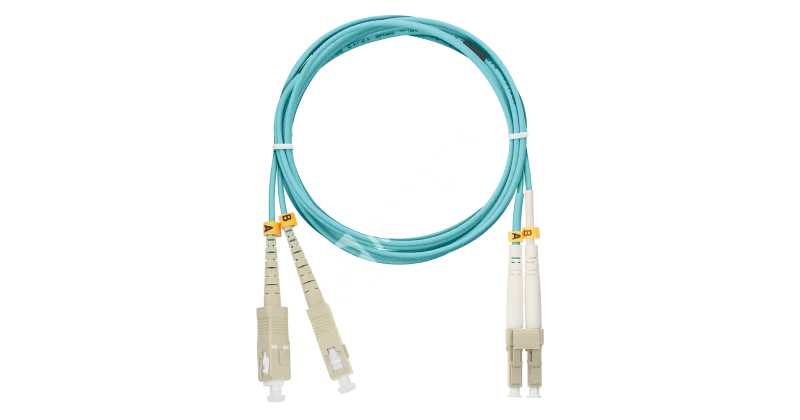 Шнур NIKOMAX волоконно-оптический, переходной, многомодовый 50/125мкм, стандарта OM3, SC/UPC-LC/UPC, двойной, полимерный материал нг(A)-HF, 2мм, аква, 1м