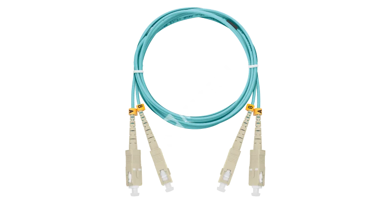 Шнур NIKOMAX волоконно-оптический, соединительный, многомодовый 50/125мкм, стандарта OM3, SC/UPC-SC/UPC, двойной, полимерный материал нг(A)-HF, 2мм, аква, 5м