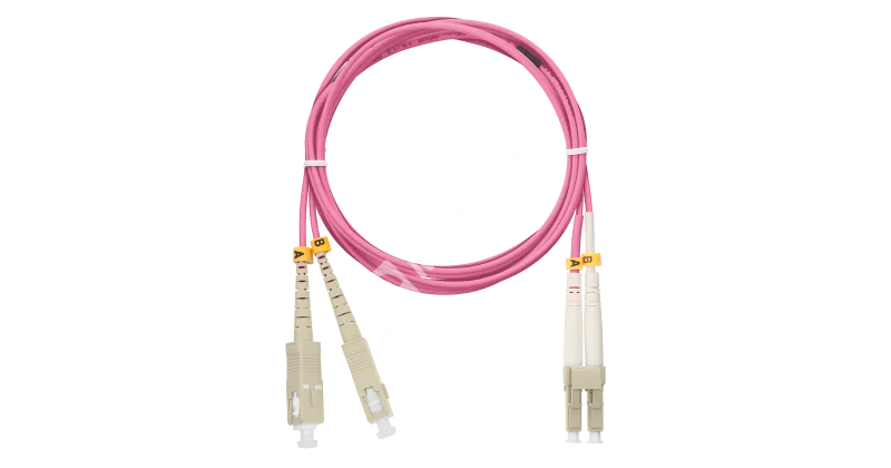 Шнур NIKOMAX волоконно-оптический, переходной, многомодовый 50/125мкм, стандарта OM4, SC/UPC-LC/UPC, двойной, полимерный материал нг(A)-HF, 2мм, маджента, 2м