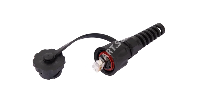 Индустриальный коннектор NIKOMAX RJ45/8P8C, Кат.6 (Класс E), 250МГц, покрытие 50мкд, экранированный, IP67, для одножильной витой пары, с защитной крышкой, черный