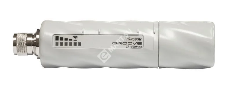 GrooveA 52 ac — защищённая точка доступа с самым компактным интегрированным радиомодулем MikroTik. Она надёжна и готова к использованию прямо из коробки, предлагая выбор между диапазонами 2,4 или 5 ГГц. Универсальность GrooveA 52 ac обеспечена разъёмом N-male. Он позволяет подключить радиомодуль к любой совместимой антенне. Вместе с радиомодулем поставляется антенна с круговой ДН.