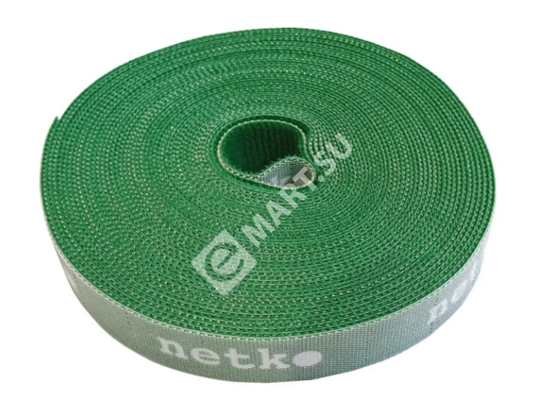 Netko Лента-липучка многоразовая 20мм*10м, с насечками для отрыва (каждые 2 см), зеленая Optima