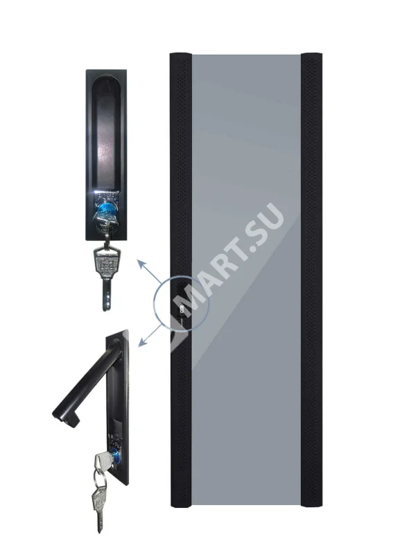 для шкафов серии Expert шириной 600мм, высотой 37U Цвет: черный Закаленное стекло, по бокам расположены металлические плашки с перфорацией для дополнительной вентиляции (перфорация 17%)