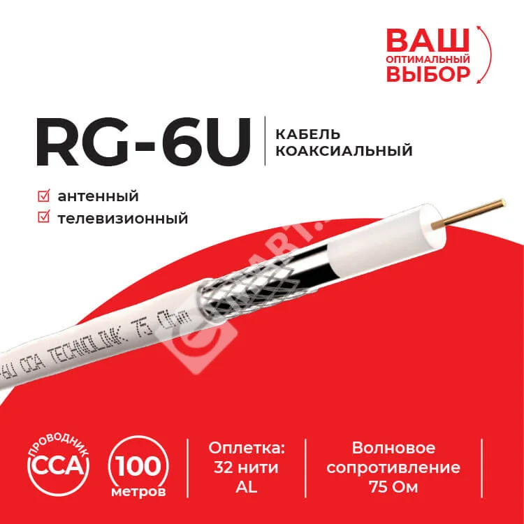 –Technolink Кабель коаксиальный RG-6U, 75 Ом (CCA, оплетка 32 нити AL), белый (100м)