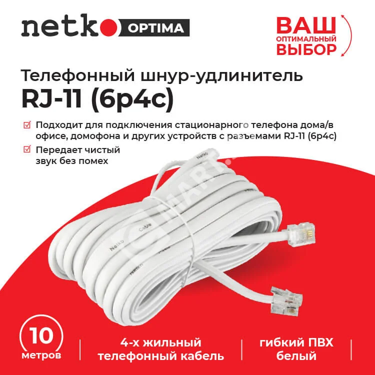 –Netko Удлинитель телефонный (6р4с) 10 метров / белый Optima