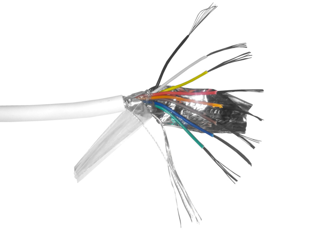 Сигнальный кабель, экранированный Количество проводников: 8 Сечение проводника: 0,22мм2 Каждый проводник состоит из 7 волосков диаметром 0,2мм Материал жилы: алюминий Материал экрана: алюминиевая фольга Бухта: 100 м (пластиковая катушка) Диапазон температур: хранение от -20С до 40 С монтаж от -10С до 50 С эксплуатация от -40С до 60 С Внешний диаметр кабеля: 4,6мм Сопротивление: 145 Ом/1км Цветовая гамма изоляций жил: 8С: красный/черный/белый/зеленый/желтый/синий/оранжевый/коричневый
