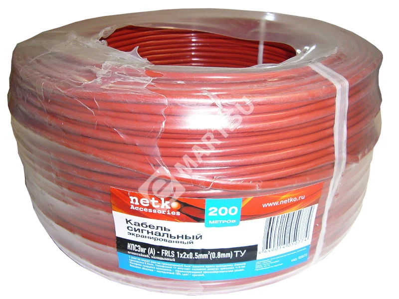 Кабель сигнальный NETKO, экранированный, КПСЭнг (А) - FRLS, 1*2*0.5мм2 (0.8мм) 200м, красный