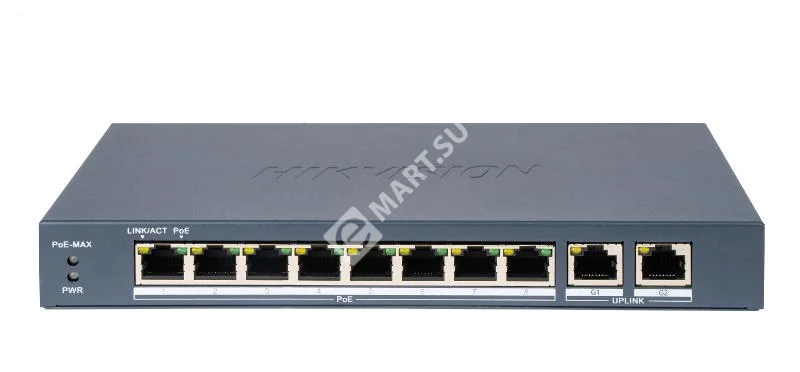 Управляемый PoE-коммутатор Hikvision DS-3E0310P-E/M(B) с 8 портами PoE и 2 гигабитными uplink-портами