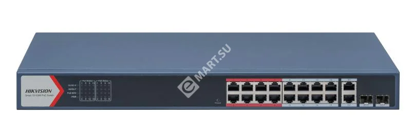 - Смарт-управляемый PoE-коммутатор Hikvision DS-3E1318P-EI(B) — 1 шт.